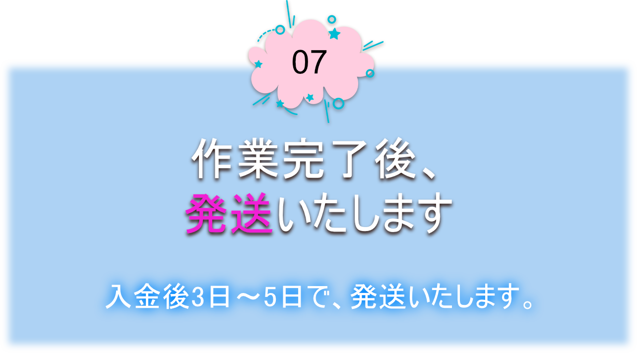 ※入金後制作に入るため、お急ぎの方はご注意ください。